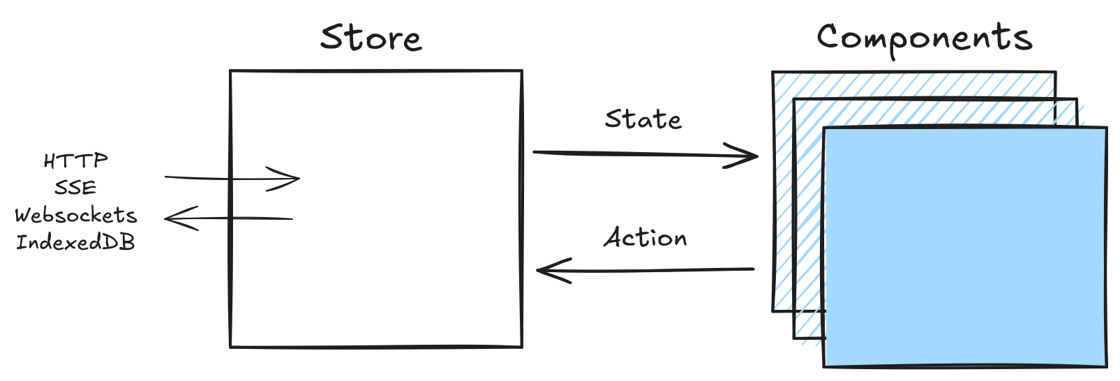 Data Client uses the flux store pattern, making debugging straightforward as each change is traceable and descriptive.